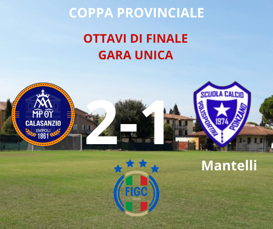 importante. I primi venti minuti parlano di determinazione, carattere, cuore e grinta, i ragazzi approcciano il rettangolo con una consapevolezza da squadra matura e il risultato arriva puntuale. È appena scoccato il minuto 5 quando Momo punta il faro in profondità, l?obiettivo è Victor Mantelli che si trova a circa 38 nodi dal punto di lancio, il taglio è chirurgico così come è efficace l?inserimento di Mantelli che brucia tutta la difesa per trovarsi davanti alla porta avversaria. Il controllo e la conclusione sono da cineteca, la sfera termina il suo viaggio nell?angolo opposto a quello di tiro, alla sinistra dell?estremo difensore che deve solo constatare la variazione del risultato. Ponzano 1 Calasanzio 0. Si mette davvero bene la serata, capitan Vignozzi e suoi continuano per tutta la prima frazione di gioco ad osservare un atteggiamento deciso cercando di chiudere quanto prima il discorso qualificazione. Iacovino ci prova in una circostanza simile a quella che ha portato al vantaggio, questa volta è bravissimo il numero uno del Calasanzio, che nonostante fosse sbilanciato riesce ad allungare un piede per respingere la palla del possibile 0-2. Momo ci riprova, questa volta con Narducci, l?assist è buono ma la conclusione di testa dell?attaccante si vanifica per pochi centimetri. Il Calasanzio nella prima parte di gara si vede una volta sola, lo fa anche abbastanza bene per ricordare ai presenti che in campo c?è anche Alderighi, il quale risponde alla grande al pericoloso tiro che riceve nello specchio della porta.