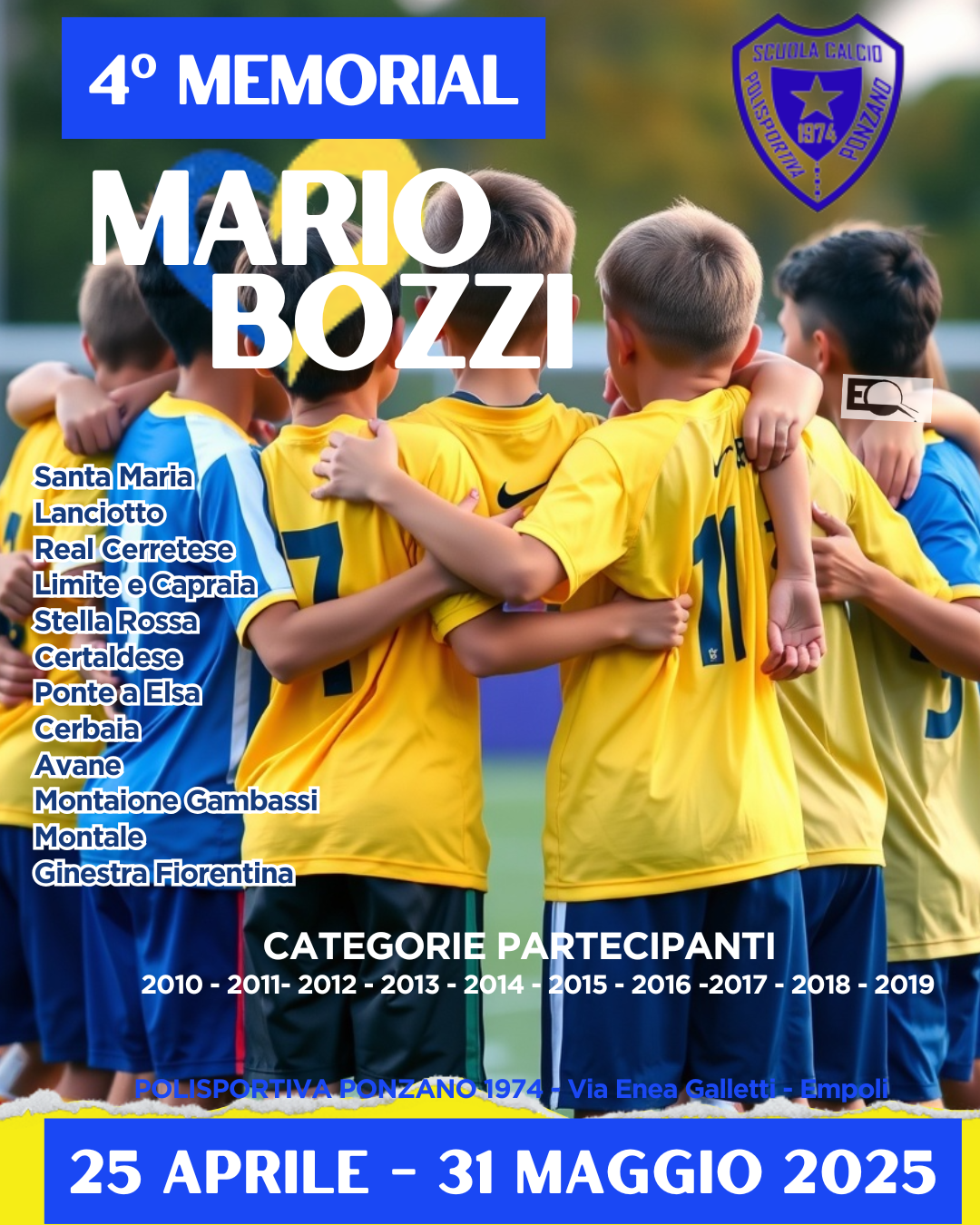 Torna anche quest?anno uno degli appuntamenti più sentiti e attesi della nostra stagione: il Memorial Mario Bozzi, torneo alla memoria di un grande dirigente sportivo, figura centrale nella storia della Polisportiva Ponzano.